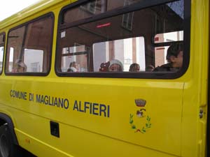 | Quando fu arrivato nel paese si fermò in piazza dove c'erano le scuole ed incontrò tutti i bambini del gruppo ROSSO. |