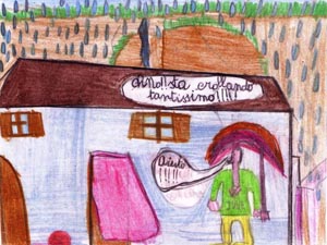 Abbiamo provato a misurare il tronco: è largo come sette bambini che si prendono per mano. Appoggiando il viso al tronco, abbiamo sentito le profonde rughe della corteccia. |